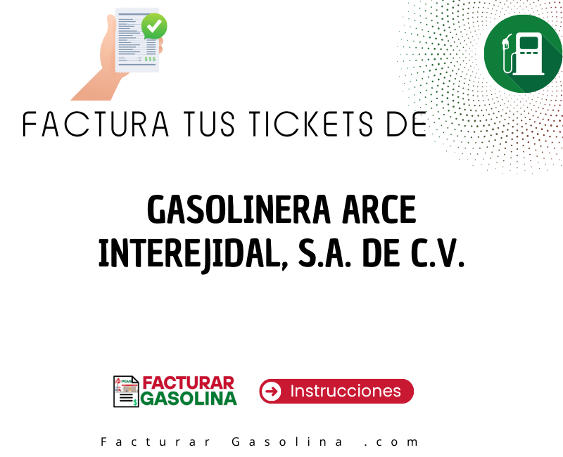 Si tienes tu ticket de pago de gasolina de GASOLINERA ARCE INTEREJIDAL, S.A. DE C.V. y requieres factura, aquí puedes acceder directo al portal de facturación GASOLINERA ARCE INTEREJIDAL y las instrucciones para generar tu CFDI. ¿Problemas ? Revisa abajo la información de ayuda.