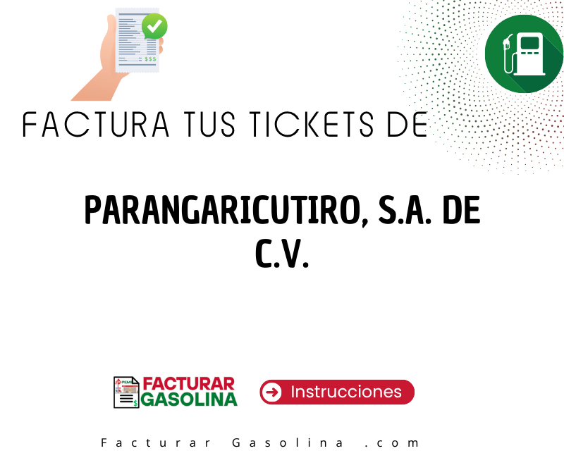 Si tienes tu ticket de pago de gasolina de PARANGARICUTIRO, S.A. DE C.V. y requieres factura, aquí puedes acceder directo al portal de facturación PARANGARICUTIRO y las instrucciones para generar tu CFDI. ¿Problemas ? Revisa abajo la información de ayuda.